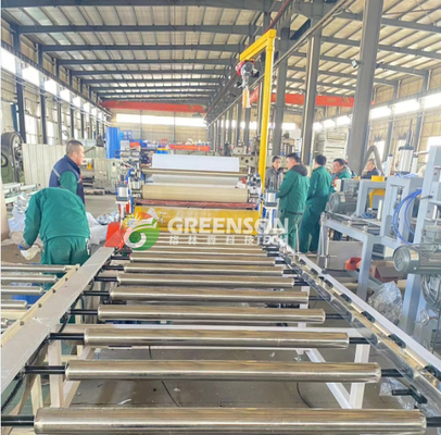 यह प्लास्टरबोर्ड लैमिनेटिंग मशीन दोनों तरफ विशेष गोंद लगाकर और फिर पीवीसी फिल्म और पीईटी पन्नी के साथ लैमिनेट करके कागज-सामने वाले जिप्सम बोर्डों (6 मिमी से 8 मिमी मोटाई) का प्रसंस्करण करती है।तैयार बोर्डों को आंतरिक सजावट अनुप्रयोगों में झूठी छत के रूप में उपयोग के लिए मानक आकार (60×60 मिमी) में काटा जाता है.